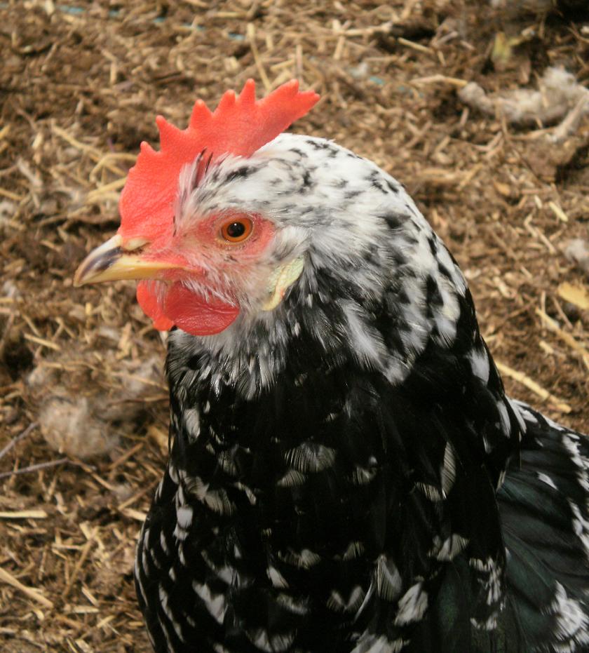 Detta ska vara en "Ancona"höna som jag fotat hemma hos en kompis.