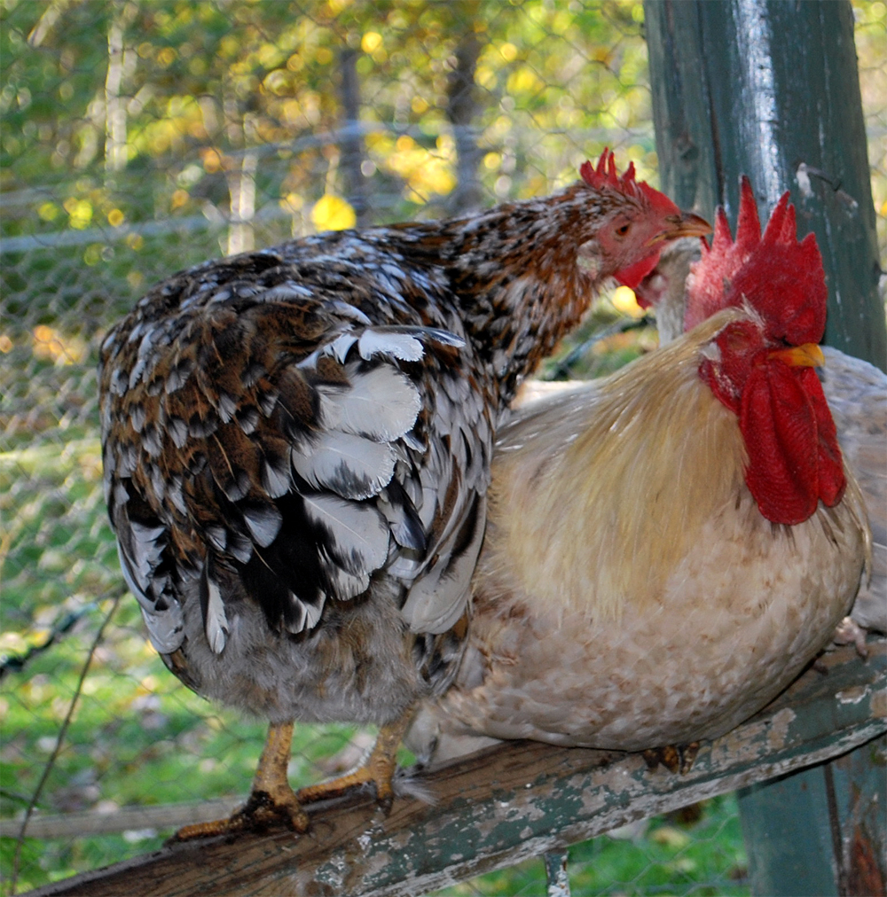 Kärlekspositionen (sådär som tuppar står när dom vill ha kärlek) Lite småkuckilurande samt annat tuppbeteende..