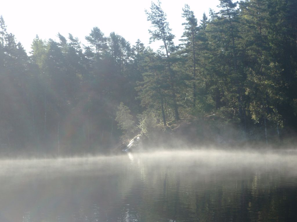 vänta för öring i morgon dimman