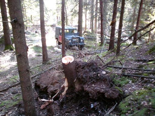 Min trogne kamrat på gården. Här winchas rotvältor tillbaka, det finns gott om dem.