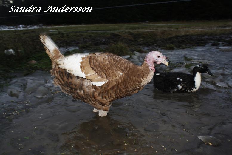 Jag känner igen det där Vår tomt liknar ett inlandshav och ankorna älskar det Det gör kalkonerna också... Deras favvolek är att se vem som kan springflaxa fortast genom vattnet så att det skvätter mest