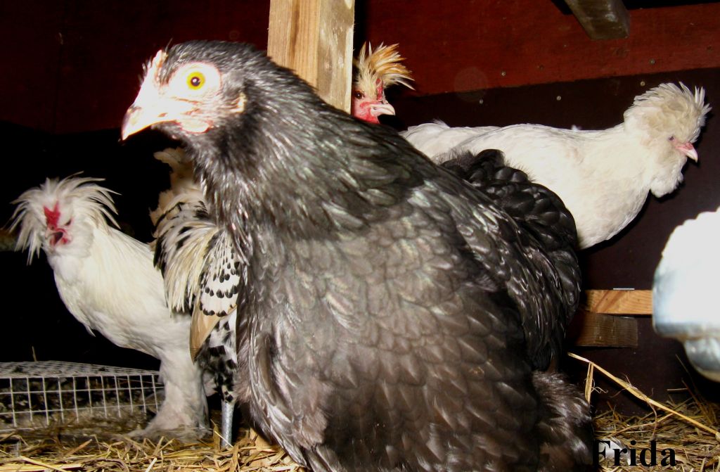 Appenzeller tuppen Affe som är linslusen i hönsgården, tittar fram!