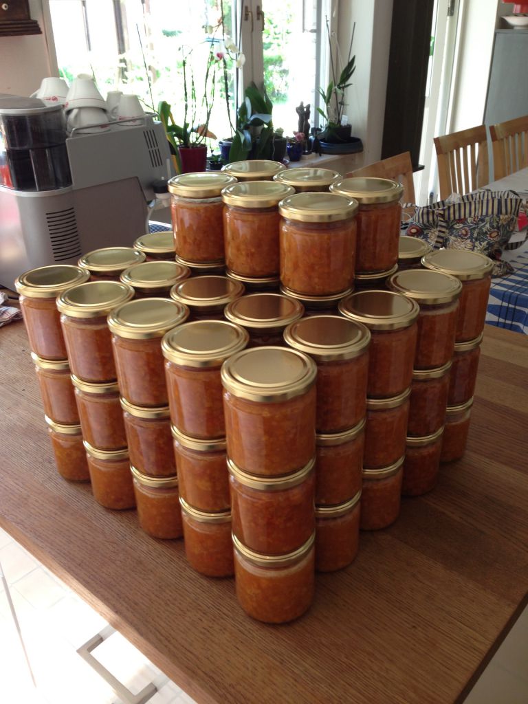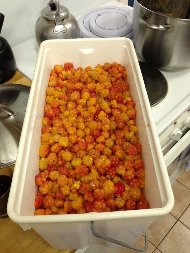 Jag fick ihop 81 st 500g burkar och lika mycket till i frysen. Man får många vänner med hyllorna fulla av hjortronsylt.