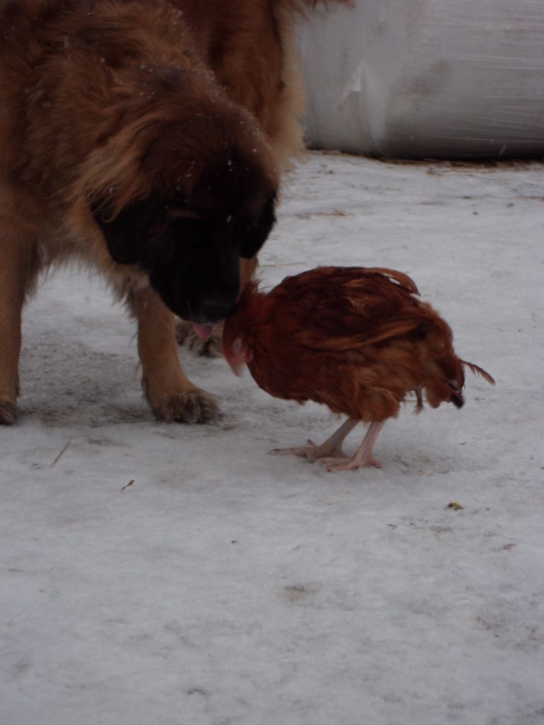 Det är jättekul att hon är så snäll med hönsen. För ett år sedan så gick det inte ens att tänka tanken att ha henne lös nära höns. Hon åt upp dem levande. Sen en dag rymde hon ut och jag fick panik när jag insåg att hon var ute lös bland hönsen, jag hittade henne nere i stallet och hon rensade alla reden men brydde sig inte om hönsen.