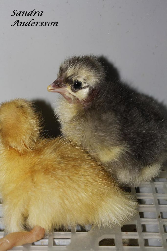 Det som står i rubriken. En blandras mellan Isbar och Ungersk nakenhals. Pappan gökfärgad nakenhals och mamman spättad Isbar. Så kycklingen lär bli blå gökfärgad.