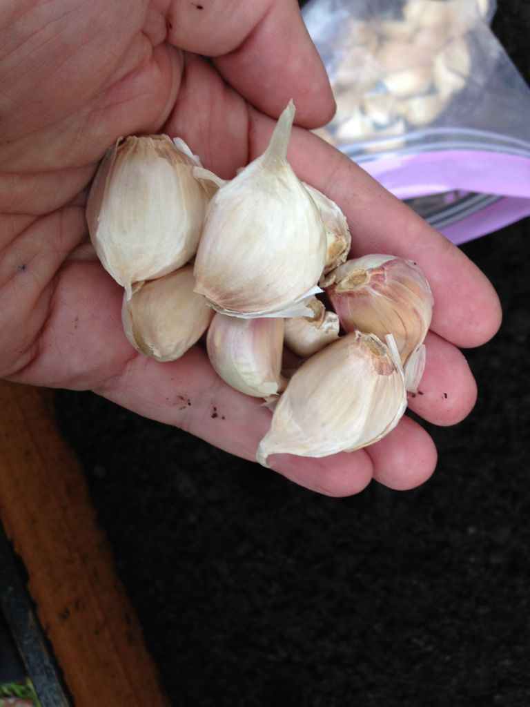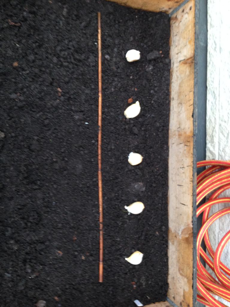 Planterat sista vitlöken, det var plusgrader kl 7 på morgonen.