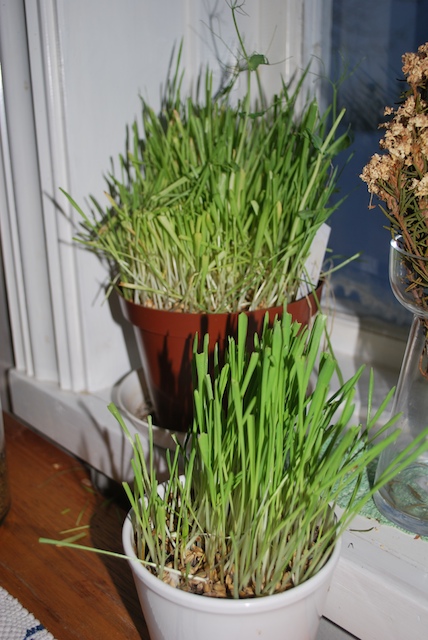 Bor du som vi uppe i snöklädda marker där inget grönt finns att plocka förrän i april så kan du odla havre korn vete till dina fjäderfän. Det uppskattas mkt. Själv lägger jag frön i blöt 1 dygn och sår sedan i krukor med jord. Detta när hönan får sina ägg att ruva eller när du lägger i ägg i kläckaren. Då är grönfodret klart till de små när dom kommer ur äggen! Getar´n