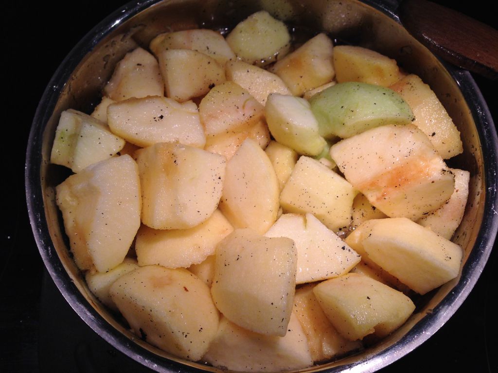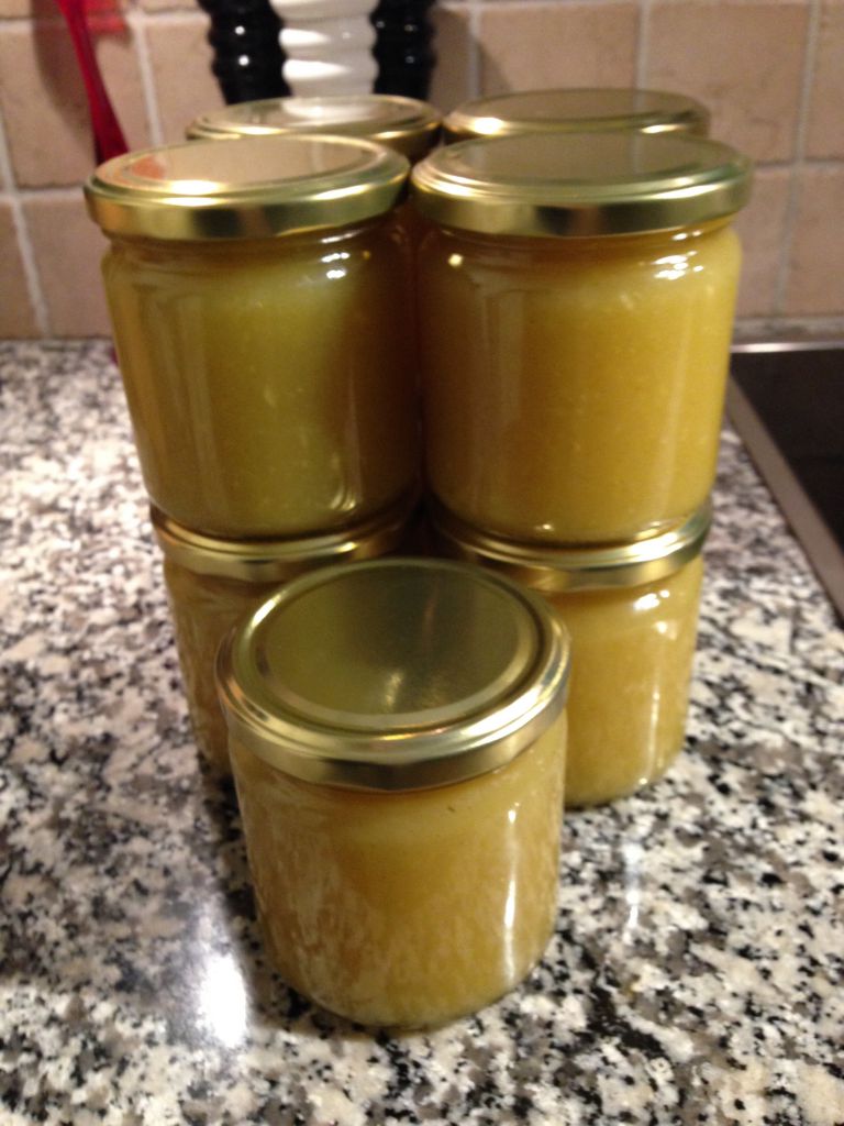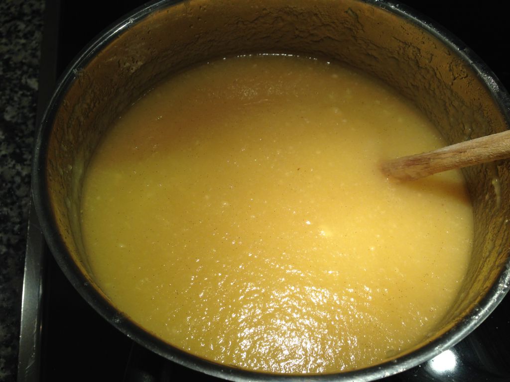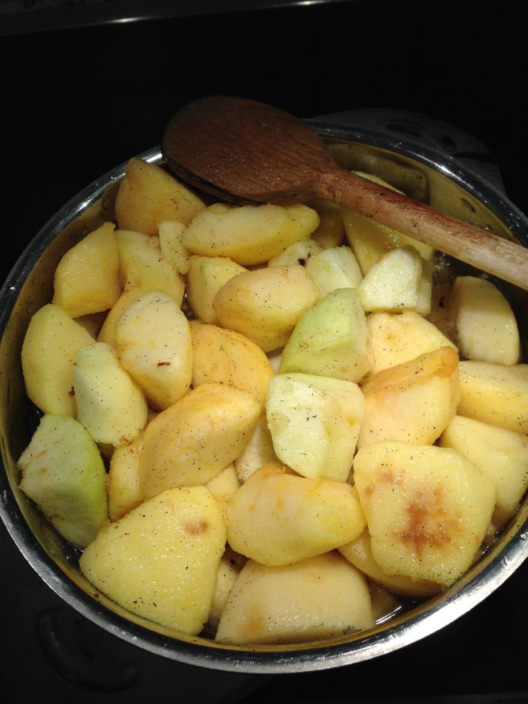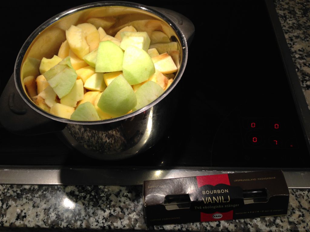 9 st 500g burkar med äppelmos och vanilj. Smaken av vanilj blir påtaglig och den är lite för smaksatt för mat. På gröten och till bakverk blir den som godast.