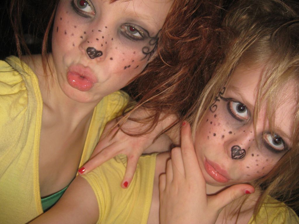Kreativa barn som kommit över av mammas pennor. Bilden är gammal och de har själv tagit den med en mobil.