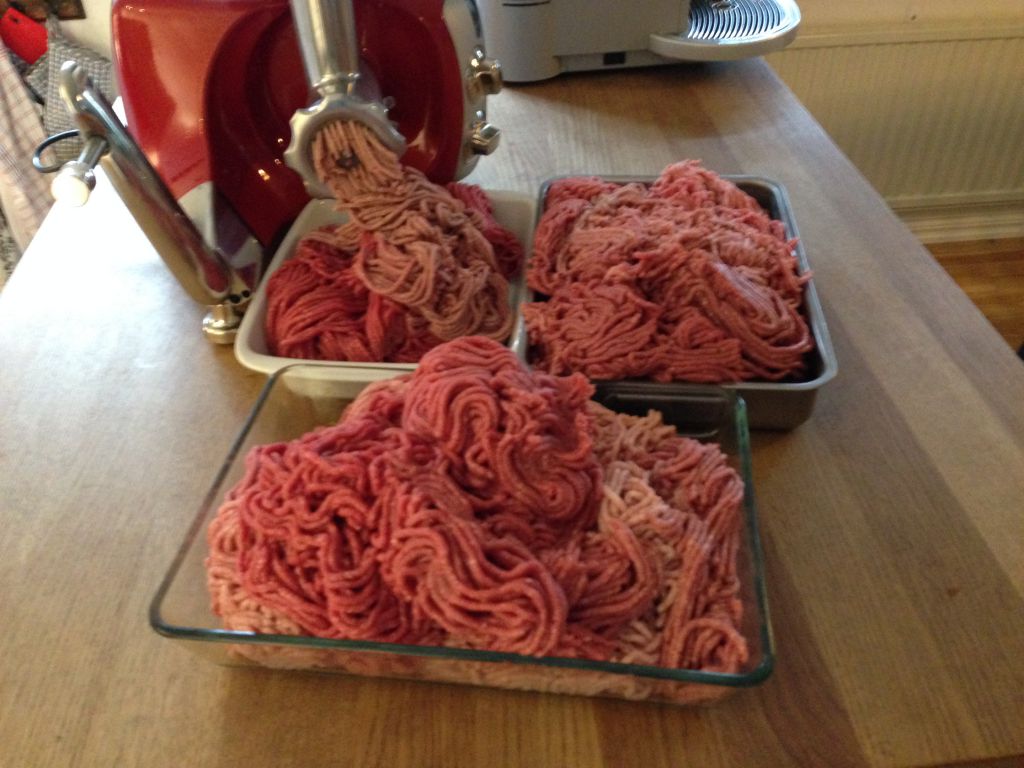 Meleringen beror på olika köttsorter och blandningar. Man blandar lite vända två.