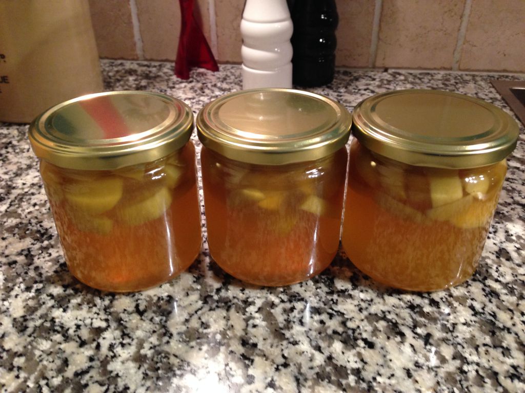 Fördelar jämnt i 3 st 500g burkar och fyller på med lag som fått svalna några minuter.
