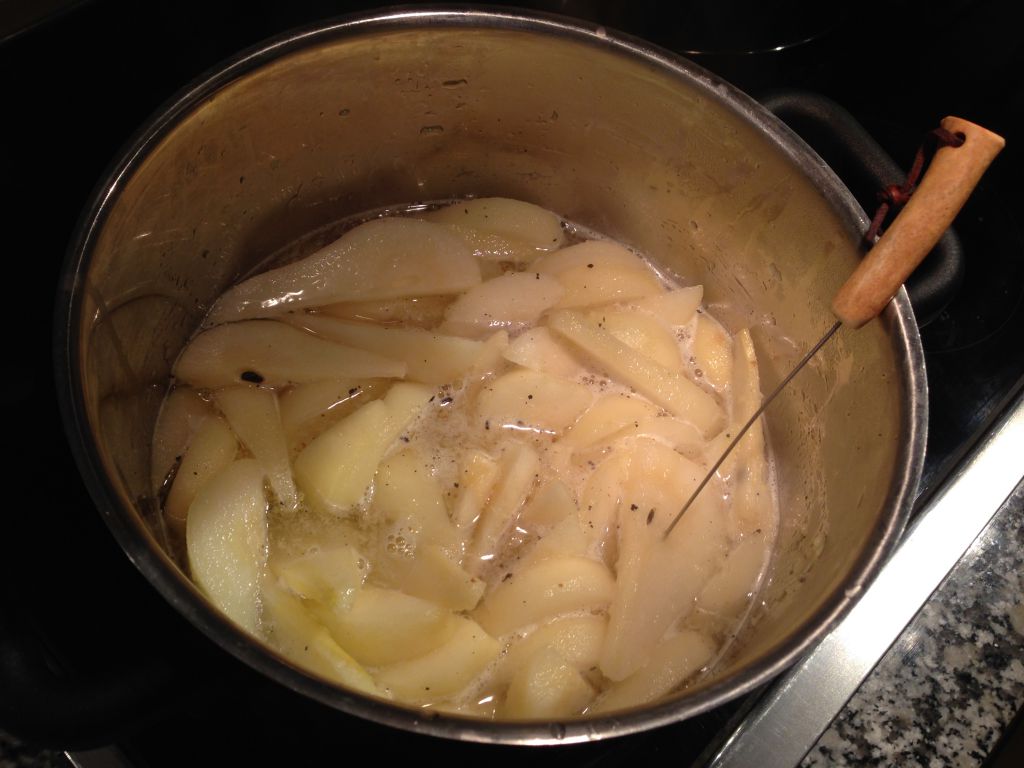 Känn efter på päronen med en sticka ifall de är mjuka nog.