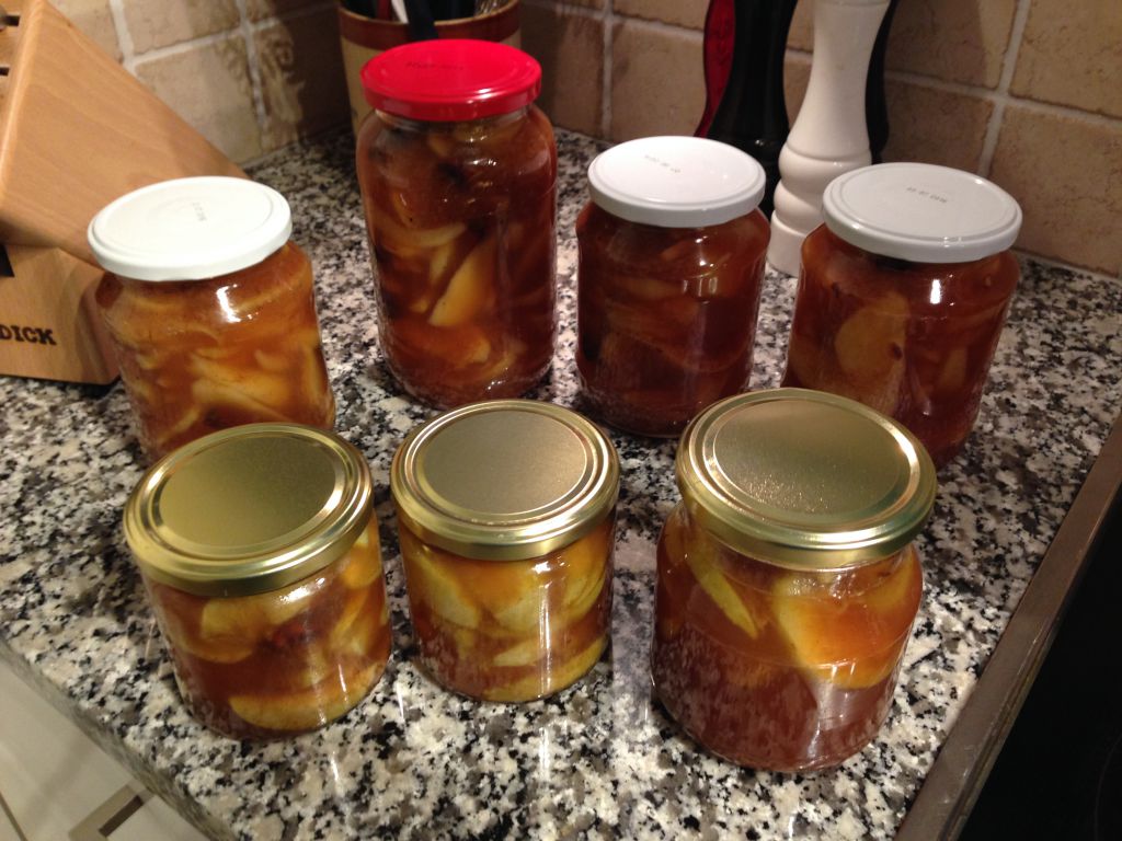 Eftermiddagens dagsverk på burk. Nu känns allt bra igen. 4 nya burkar päron och de 3 främre är äpplen, MUMS!!