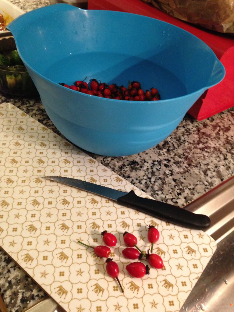 Att plocka vildnypon är ett fakirjobb. Att dela och rensa innehållet är något värre, det tar tid. 2 liter tar en evighet och håller inte tålamodet kastar jag de små.