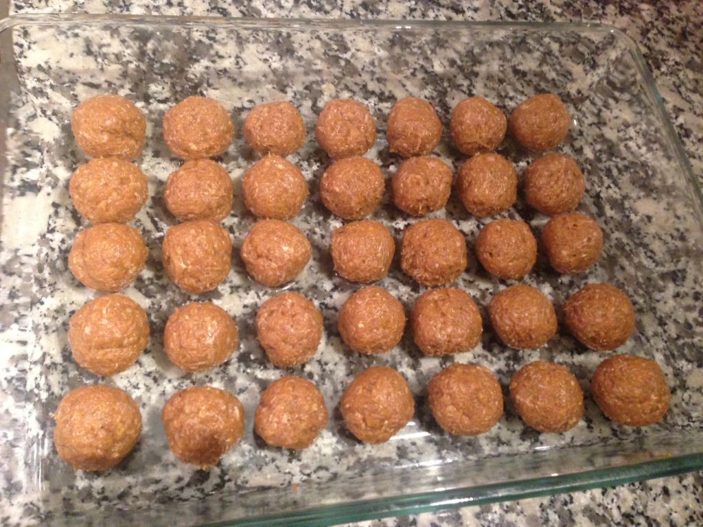 Jawohl! Köttbullar med Tysk precision. 300 st blev det och köttbullemuskulaturen i övre ryggen har protesterat. Köttbullar utan ägg men med en skvätt mjölk i smeten. Lättrullade!