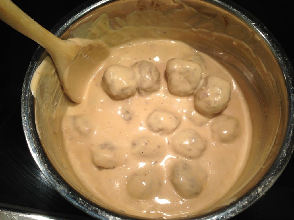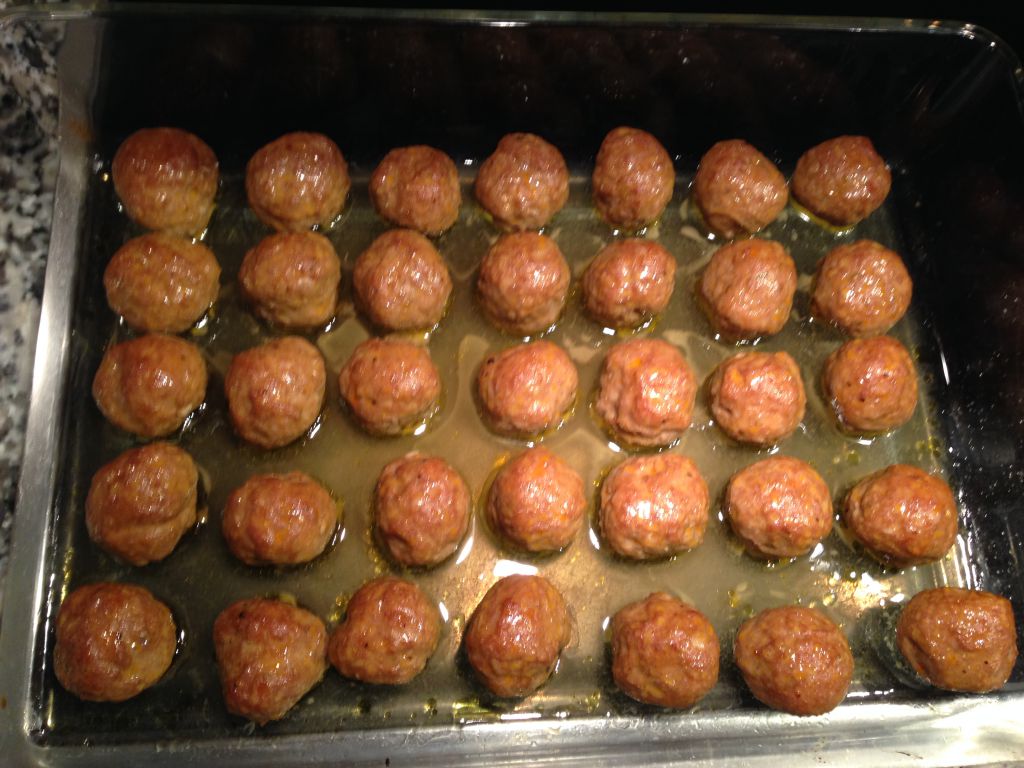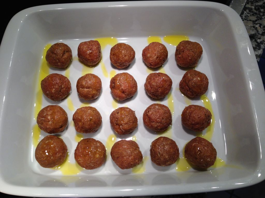 När köttbullarna är klara är de glansiga och det finns vätska i ugnsformen.