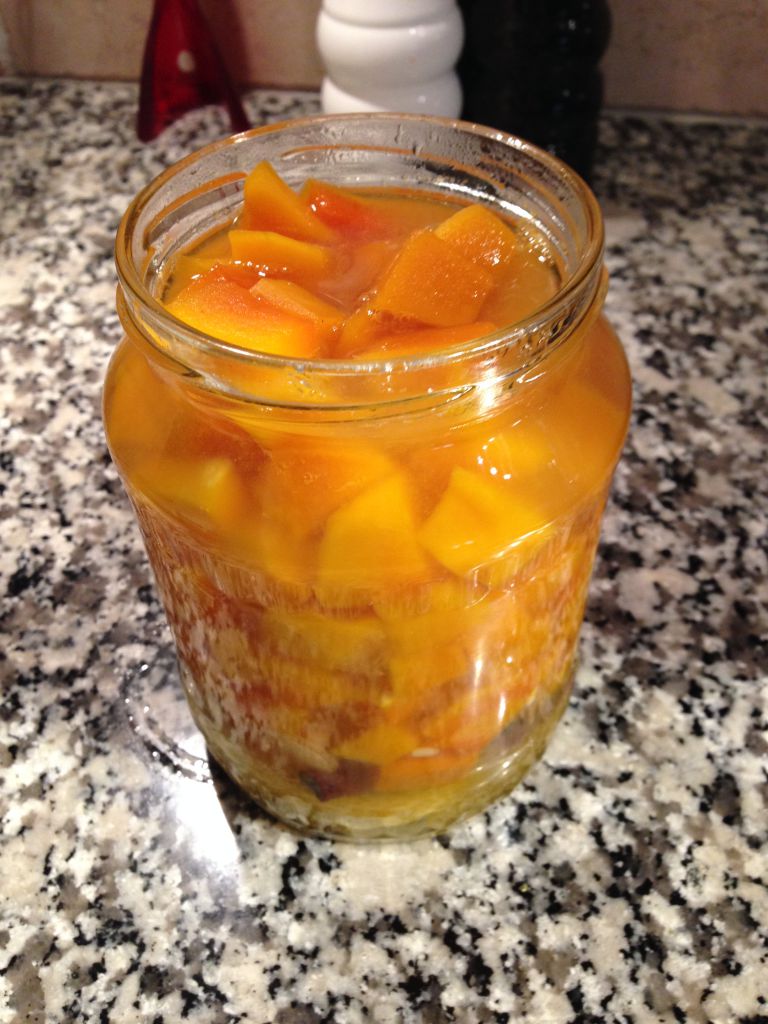 Lägg pumpan i burken och häll lag upp till nära kanten.