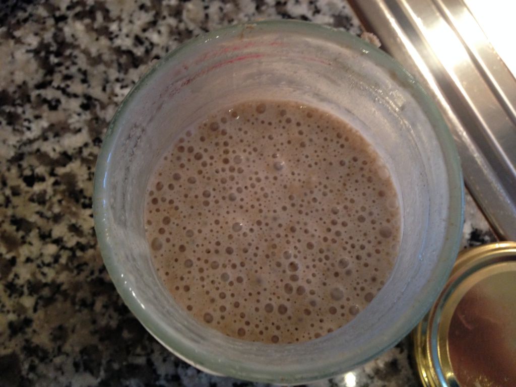 1 ) Man blandar mjöl och jummet vatten väl i en ren glasburk. Jag har gjort 2 små hål i locket, några gör, andra gör inte. Man kan ställa den ovanpå kylskåpet eller på en varm plats men ej över 28 grad…