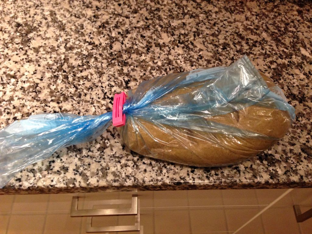 Lägg degen i en fryspåse och tryck ut luften, sätt på en 'pinky' frysklämma.