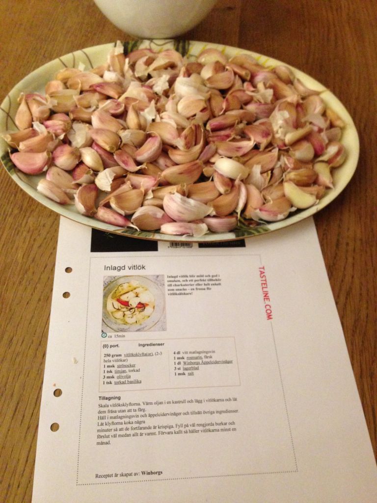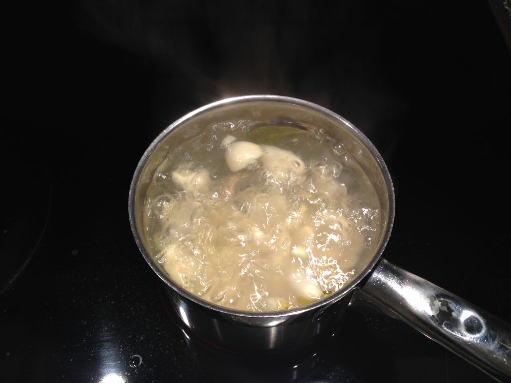 Koka upp vitlöksklyftorna i ca 1 minut och häll sedan av vattnet.