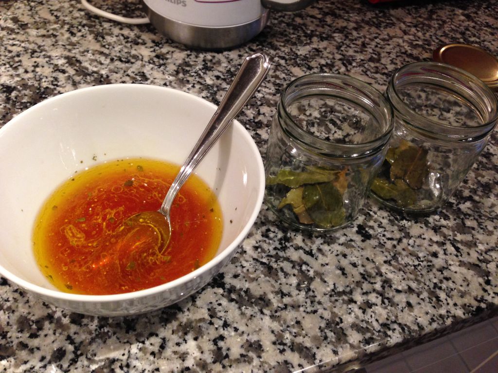 Jag hade lagerblad kvar i botten på kastrullen, peta i dem också.