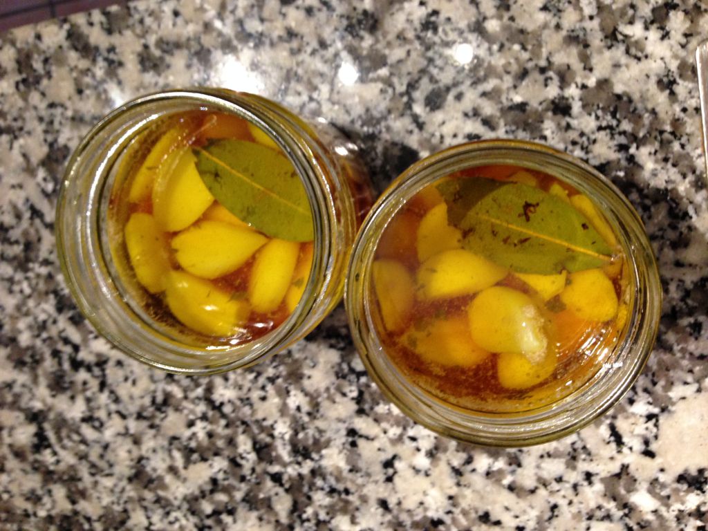 Värm upp lagen till ca 60 grader så att lösningen blandar sig och häll den på burkarna.