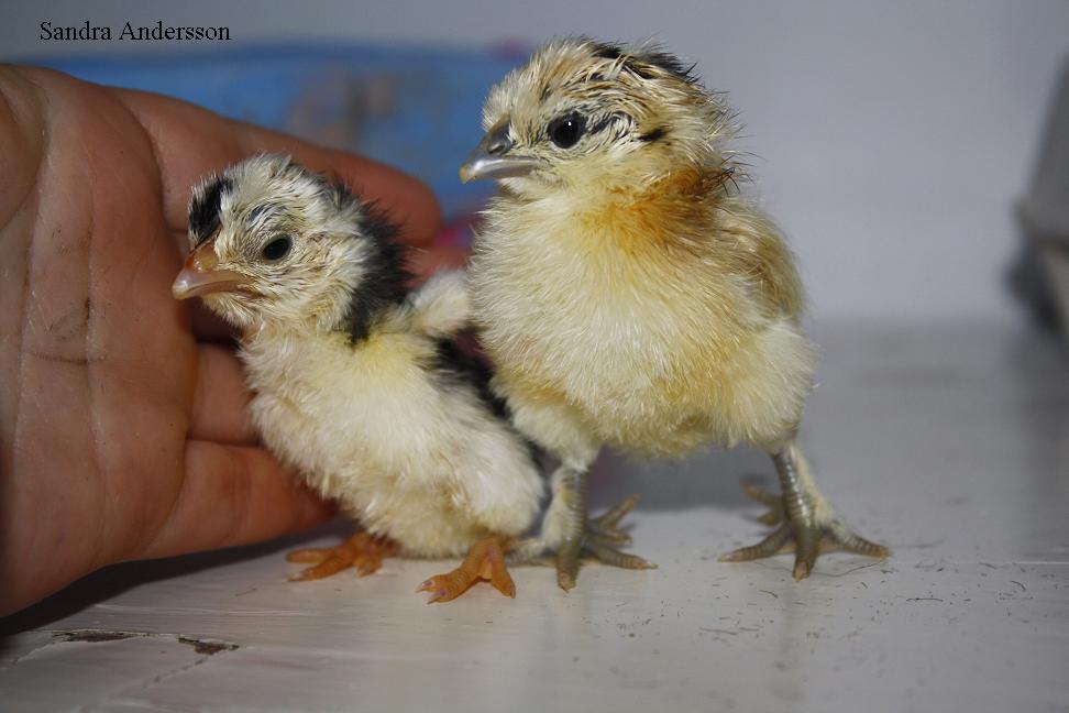 En Serama och en Serama/Dvärg silkekyckling =)