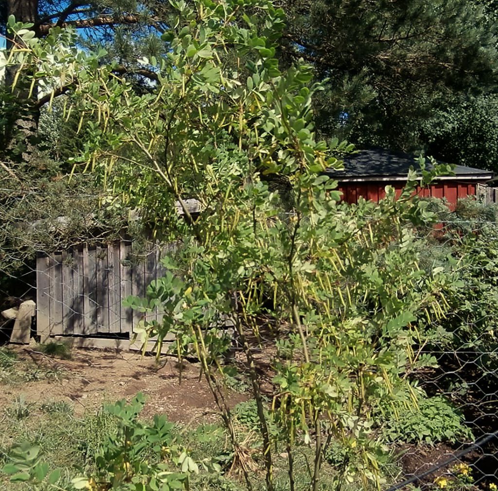 Ger gott om frön och ska fungera som skydd mot rovfågel runt hönsgården, skugga och så är den ju en ögonfröjd vid blomningen.