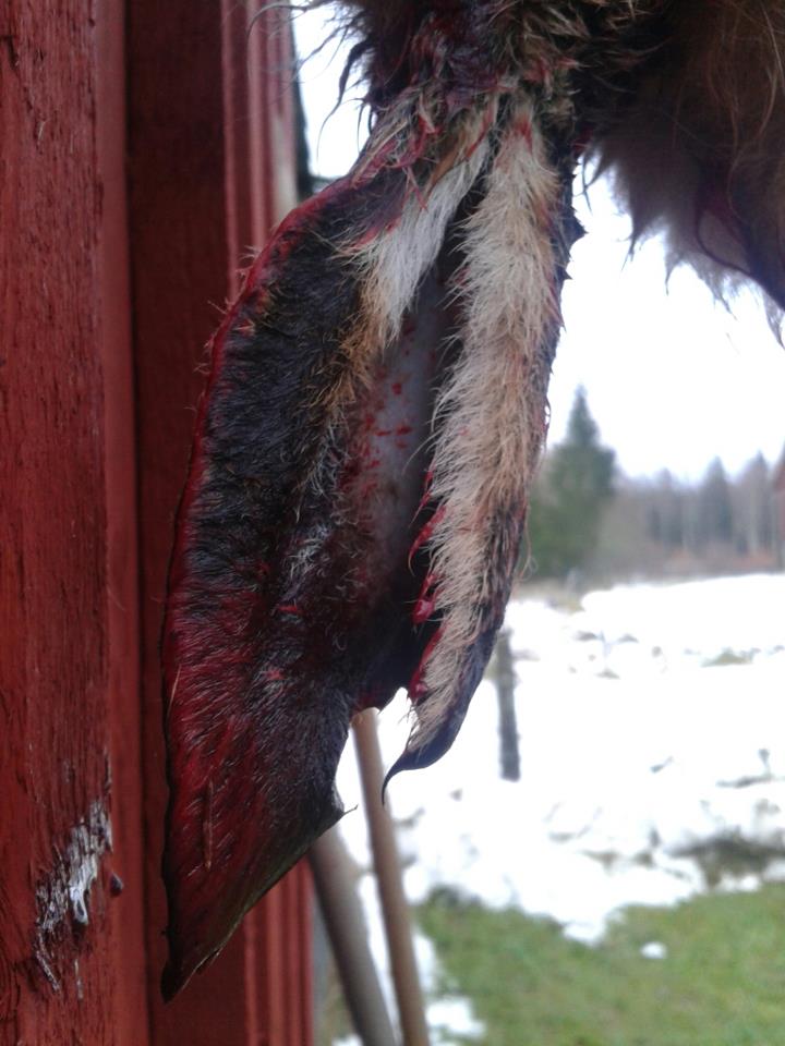Ja, varför ser öronen ut sådär på haren? Helt söndertrasade? slagsmål? Ignorera blodet, det är från när stefan sköt haren.