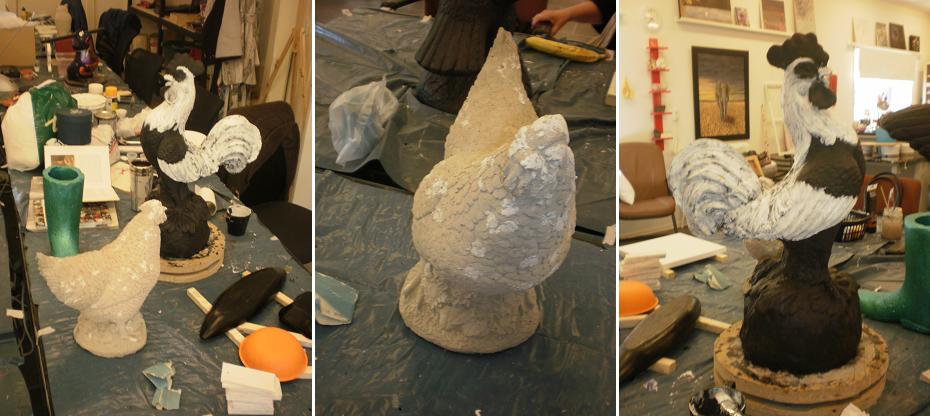 Ska även bli en hel del arbete på den lilla hönasn som ska bli spräcklig, denna tupp ska bli flerfärgad med mycket beige, koppar, vit & svart i den. Dessa ska jag behålla själv, ska även göra någon/några hönor till, till mig själv. Men vet att dom gjuter tuppar på kursen jag går på.