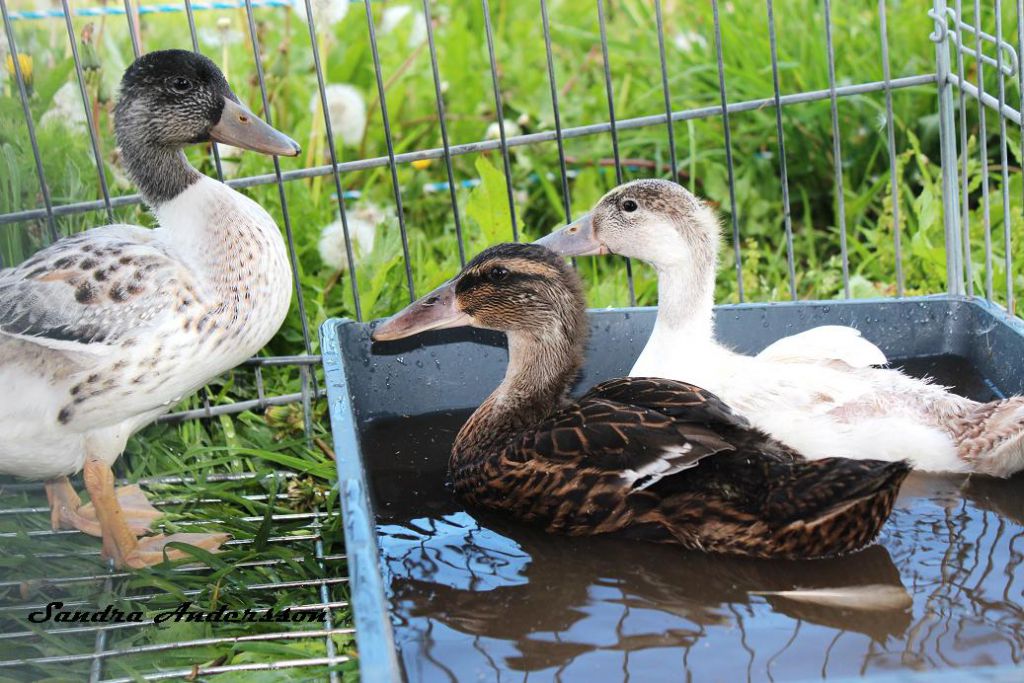 Men i "föräldragruppen" fanns iaf. bland annat "smaragdisar" och mignoner, gräsänder, "parkisar" i olika färger (vita, svarta, vilt, silvervilt, något åt aprikoshållet m.m) ... Även större blandisar men de tror jag inte är iblandade i dessa småttingar (ser ut att bli ungefär som gräsänder i storlek som fullvuxna).... Så det finns ju en hel del möjligheter.