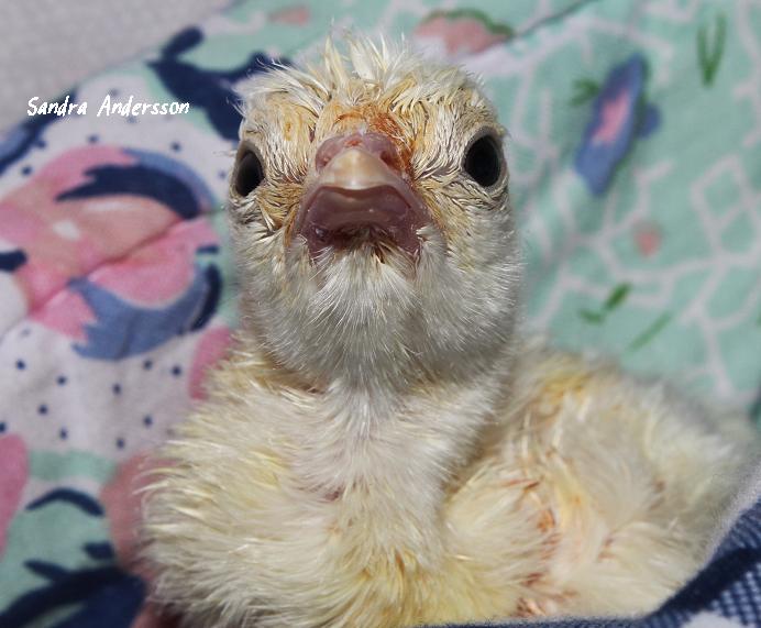 Efter Ingvar försvann så har jag inte sett en endaste parning, Berit tycks inte acceptera Erik utan har gett mig blanka ägg, ett efter ett. Mig däremot ser hon som tuppen som ska få bli pappa till hennes avkommor och kommer knatandes och kan lägga sig glatt framför en när hon känner lust för det. ... Vilket är ju lite... Ganska mycket fel ... När Erik kommer i närheten så reser hon sig, han får INTE komma till. Efter att ha lagt in ca 25 blanka ägg i kläckaren ... Började kännas hopplöst och jag vill ju så gärna ha några bäbisar efter Berit ... Och Erik är ju så snäll och fin som kommer sams så bra med mina små dvärghöns han lätt skulle kunna krossa om han vore en bråkigare tupp! Så honom hade man ändå inte lust att byta ut med risk att få någon ny elak jäkel som kanske inte heller blir accepterad av Berit ändå. ![]() Så då tog man till den sista utvägen och inseminerade henne med Erik. Denna kyckling är resultatet av en av inseminationerna och den första kalkonkycklingen för mig i år. Äntligen en liten mini gobbler efter Berit (och Erik med såklart), är så glad! Har flera befruktade ägg i kläckare o under höna nu och har testat att kolla om Erik kanske inte gör det i smyg nu men nä... Såfort jag slutar att hjälpa till med befruktningen så sjunker den som en sten = De tycks inte para sig. ![]() Få se om Erik kanske tuffar till sig någon dag och vinner damens hjärta, hoppas han gör det så det kan sköta detta själva, för det lär de ju kunna! Det handlar ju inte om några stora BUT kalkoner som inte kan para sig naturligt, är bara kärringen som tycks bestämma över tuppen. ![]()