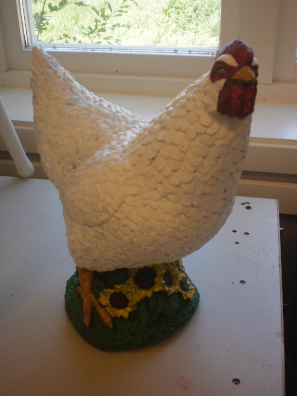 Den vita hönan är klar, ska bara lackas.  (tyvärr lite mörk bild)  Men den ska säljas i shopen.
