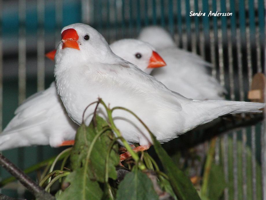 Nu tutar det för fullt i den. Zebrafink var väll inte direkt en burfågel man såg framför sig att ha. Har tyckt de verkat så tråkiga. Men så fick jag ett sms av mamma som är bortrest och fått syn på några zebrafinkar - "Sådana vill jag ha när jag fyller år" ... Ja, nu är det för sent. Farligt att säga sådant till mig när man vet att man har en tom bur ledig ... Skulle "bara" titta runt lite på annonser på finkar och lyckas få upp en helt färsk annons med fåglar till ett riktigt billigt pris om man jämförde med andra annonser ... Skulle bara höra om de kanske råkade finnas kvar ... Oj, det gjorde de... Och oj, de kunde mötas upp på ett ställe också. ![]() Ja, så nu är de här de små tutorna. De verkar ha tagit resan väldigt bra. Pratar på, putsar och har sig... Och mamma vet såklart inte om det. Det får bli en liten överaskning när hon kommer hem nästa vecka. Måste faktiskt erkänna också att när man väl har dessa små knattar här hemma så är de riktigt trevliga och roliga att titta på. Mycket roligare än de man sett i djuraffärer och liknande av någon anledning. Verkar vara ganska orädda utav sig.