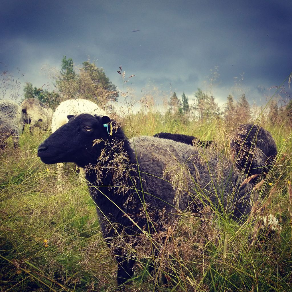 Fåren på bete i juni.