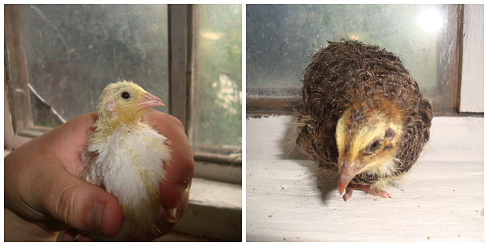 2 av mina 3 japanska vaktlar. Har fler ägg i kläckaren, så hoppas det blir några fler!