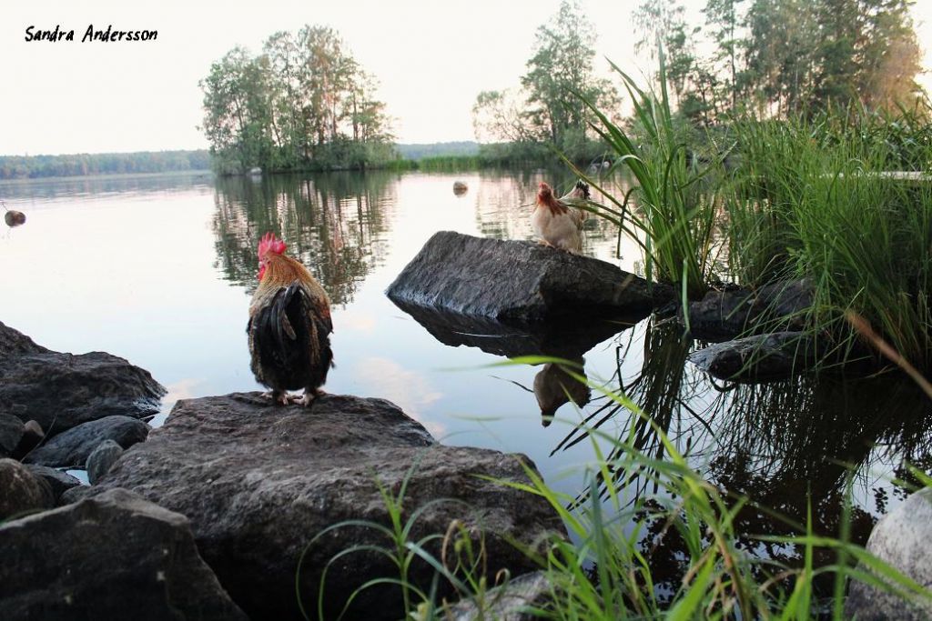T2 Jr och en höna fick följa med oss till Emils familjs holme under helgen.