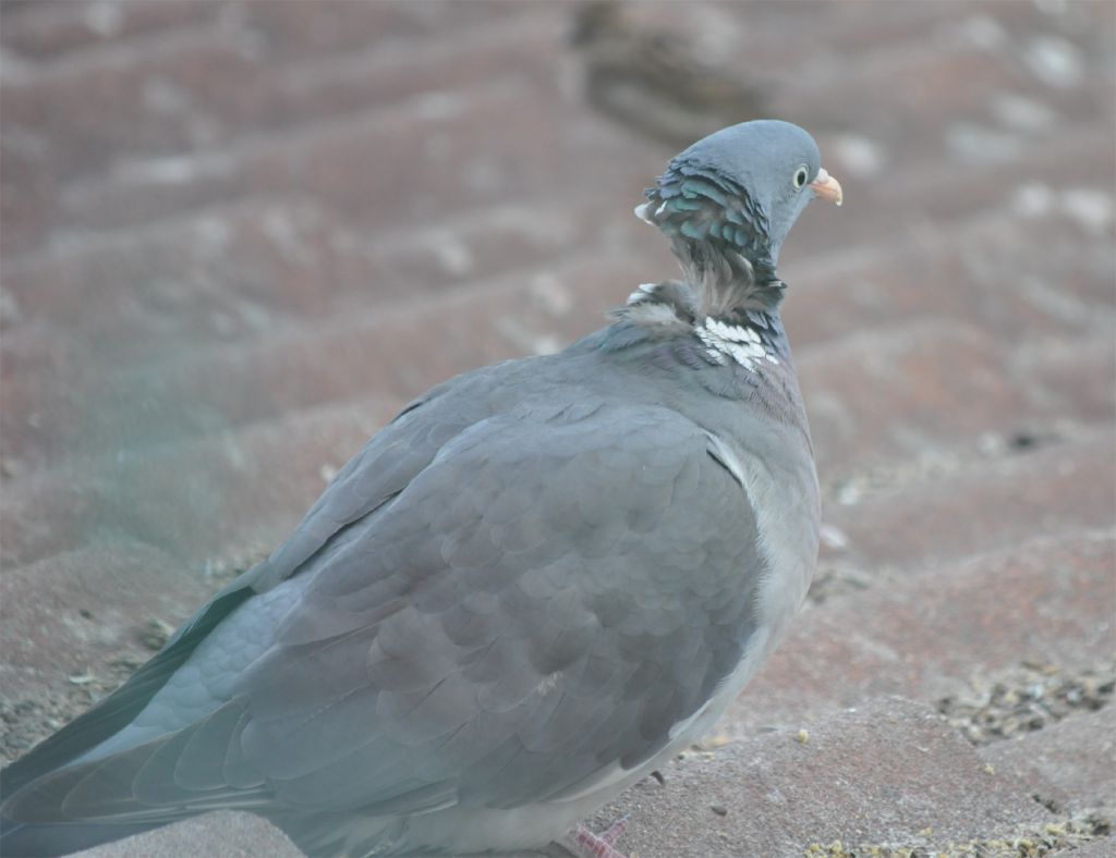 Den klarade sig och nya fjädrar växte ut under sommaren,vilket kan ses på den andra bilden som laddades upp samtidigt. (Fotograferat snett genom tvåglasfönster)