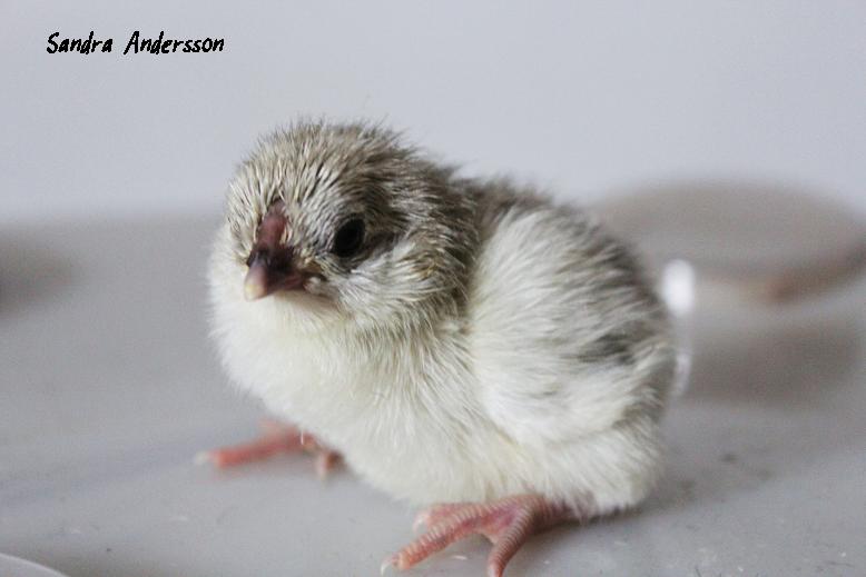 Jag har stoppat i jag vet inte hur många ägg under sommaren i kläckaren ... Nu, äntligen har det jag väntat på kläckts! En pärlgrå, rumplös kyckling med KVASTAR, yes och jippihurra vad jag är glad!