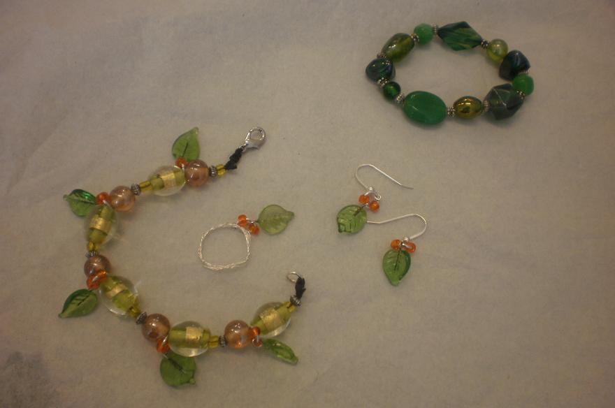 Jag gjorde ett set av armband, ring & örhängen. Somrigt set.