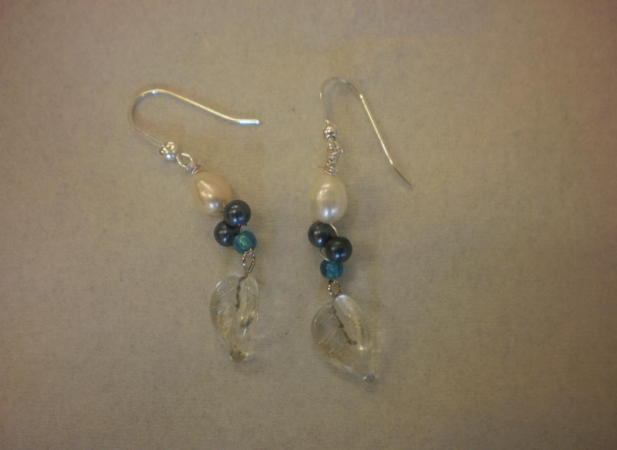 Örhängen med ett blått & vit tema på & med lite naturkänsla.