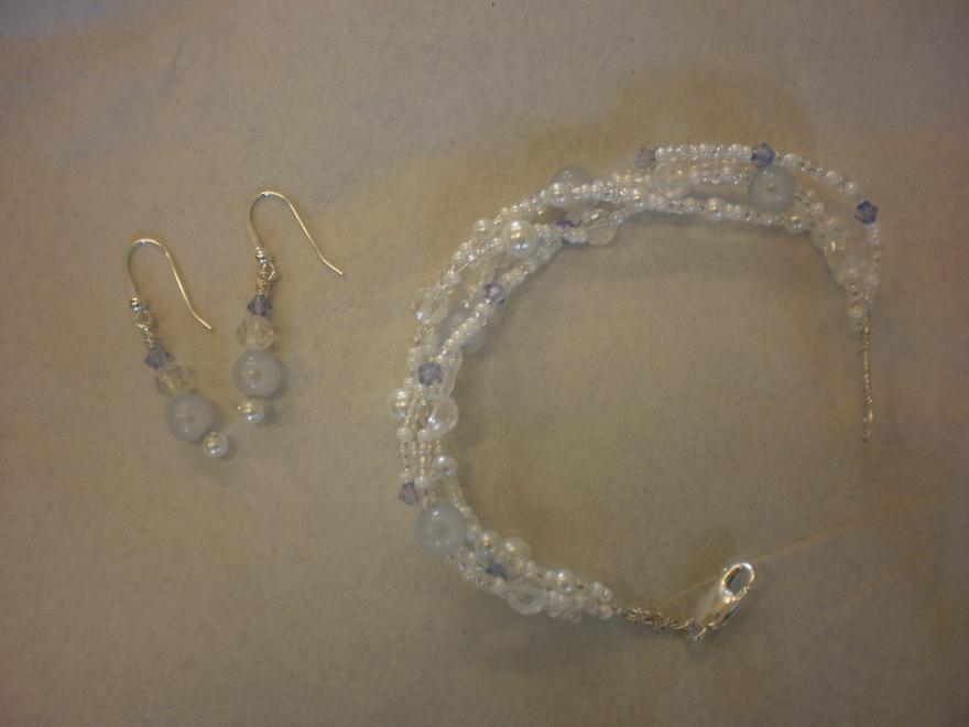 Ett väldigt vit med lite frostat & ljusblåfrostade pärlor. Detta är gjort med olika pärlor & silvertråd.