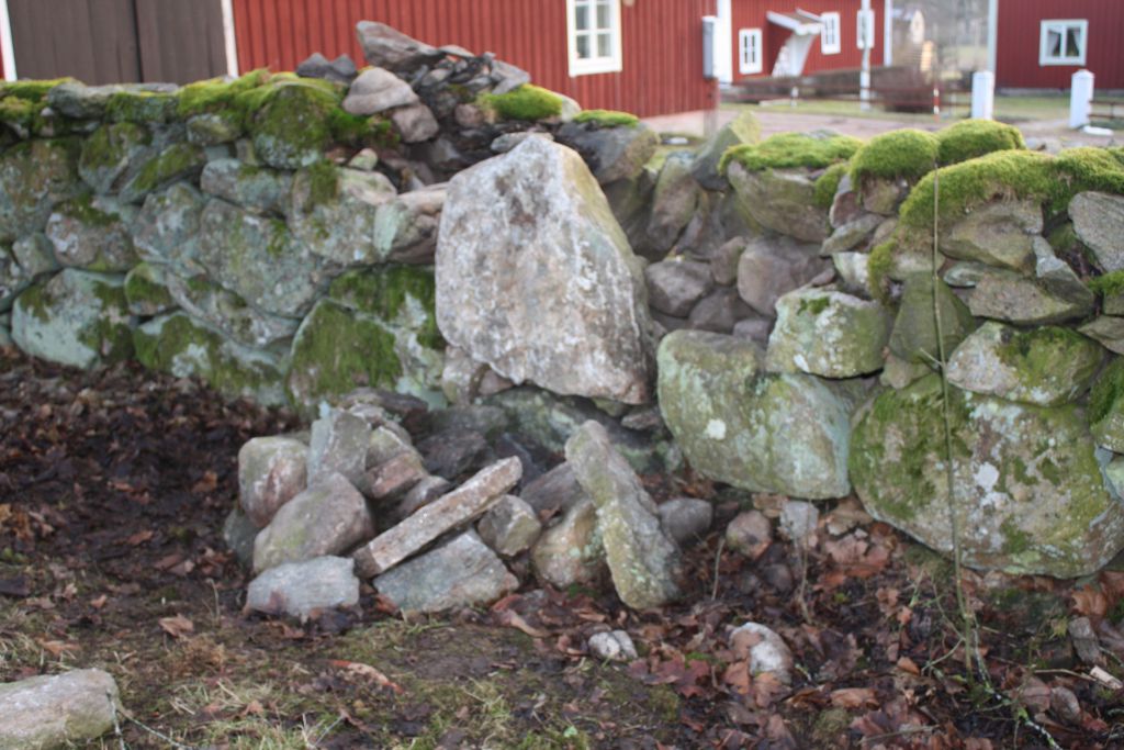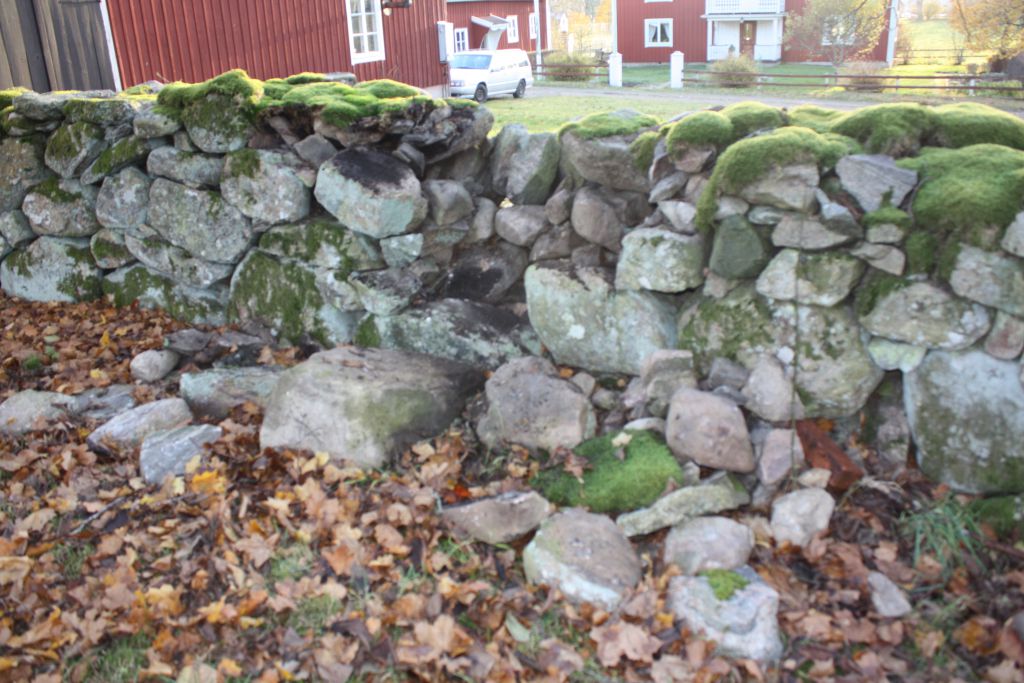 Före reperation, den stora stenen orsak till raset, den har tappat kontakt i botten på en liten klack, så gled den ut.