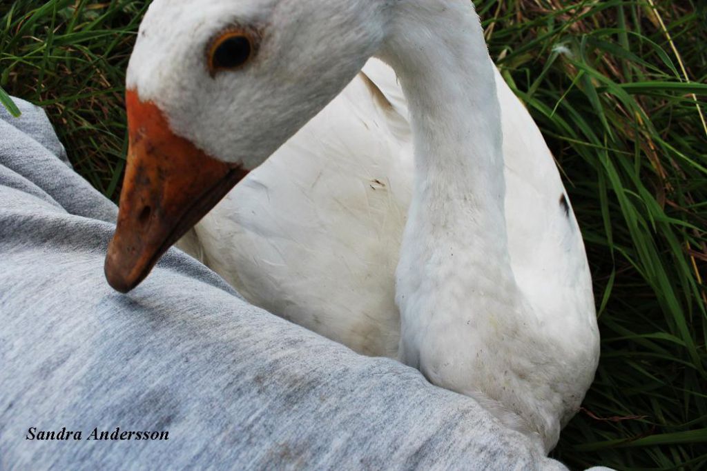 Började nästan gråta för det är tänkt att den ska slaktas senare i höst och det är jag som ska vara bödeln. Har inte hanterat den något mer än att man gått o pratat och varit i deras närhet. Tänker att man inte ska fästa sig vid de för mycket ... Så går gåsskrället och gör såhär, INTE SCHYSST! ![]() Kommit fram till att det måste vara samma gås som springer efter en när man ska gå därifrån med (har 2st som ser ut att vara knöl i, ganska lika förutom att den ena har en svart prick på sig) ...