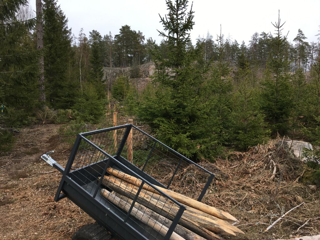 Stängsel på gång, sätter fårnät 90 cm högt.