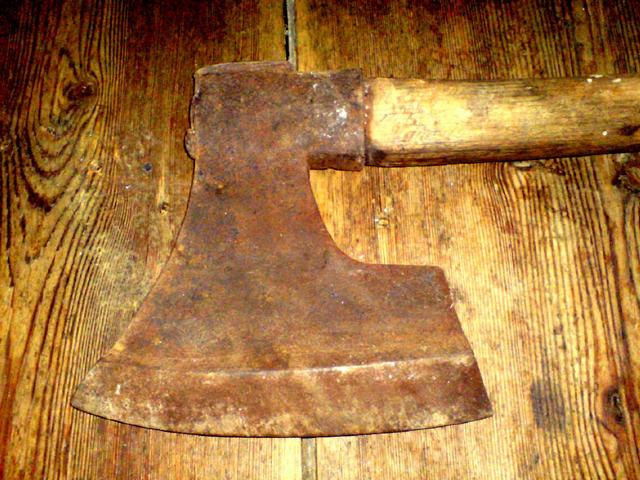 Jag har en exakt likadan! På yxan står inslaget Holmberg Wira. Jag var uppe i Wira bruk och i dörrposten till smedjan finns smedernas namn inslagna och jag hittade Holmberg. Runt 1700, när Karolinervärjorna slutade tillverkas, blev det yxor i stället. Mycket vacker pjäs!!