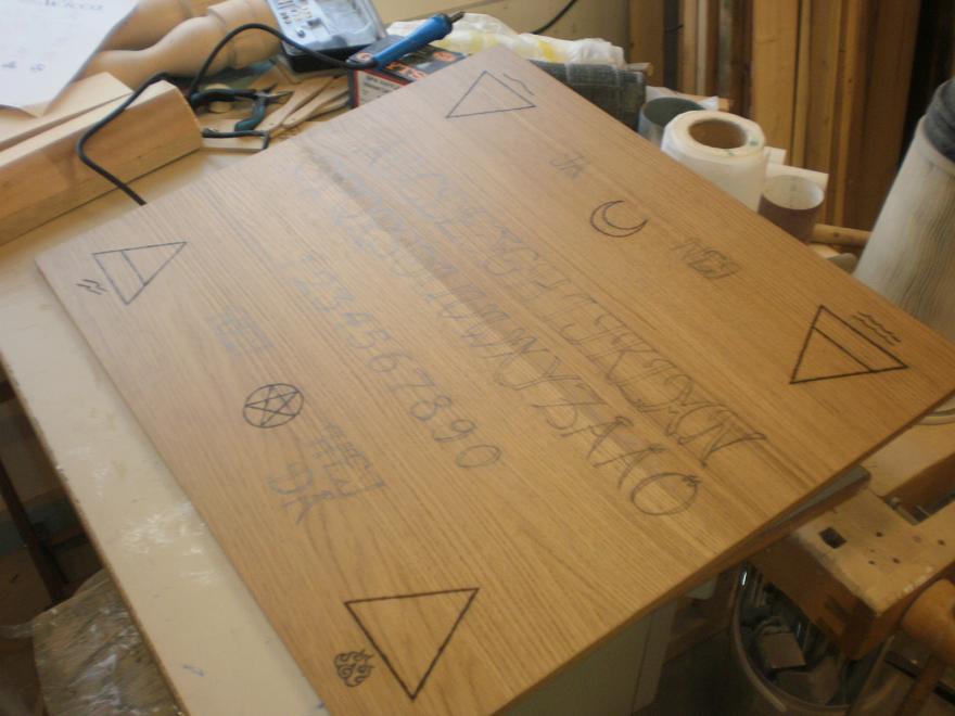 Börjat bränna in dom 4 elementen, ett pentagram & en halvmåne.