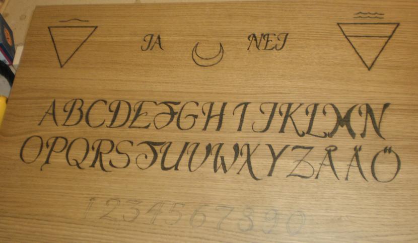 Jag har bränt in alla bokstäverna som ska vara "Quija" brädan.