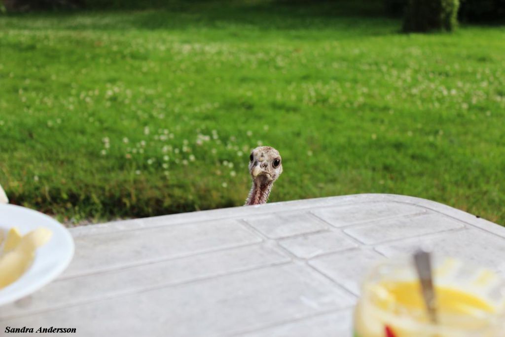 Från i somras när vi var ute och grillade. ... Någon minut senare när man vände ryggen till så hade vi snabbt en kalkon på matbordet ...  Och inte en grillad sådan.