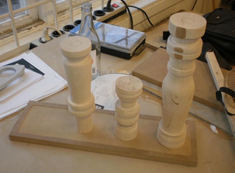 Här är den längst till vänster vänd & även gjort en tredje av 4 st. ljusstakar som ska sitta på den lilla brickan.